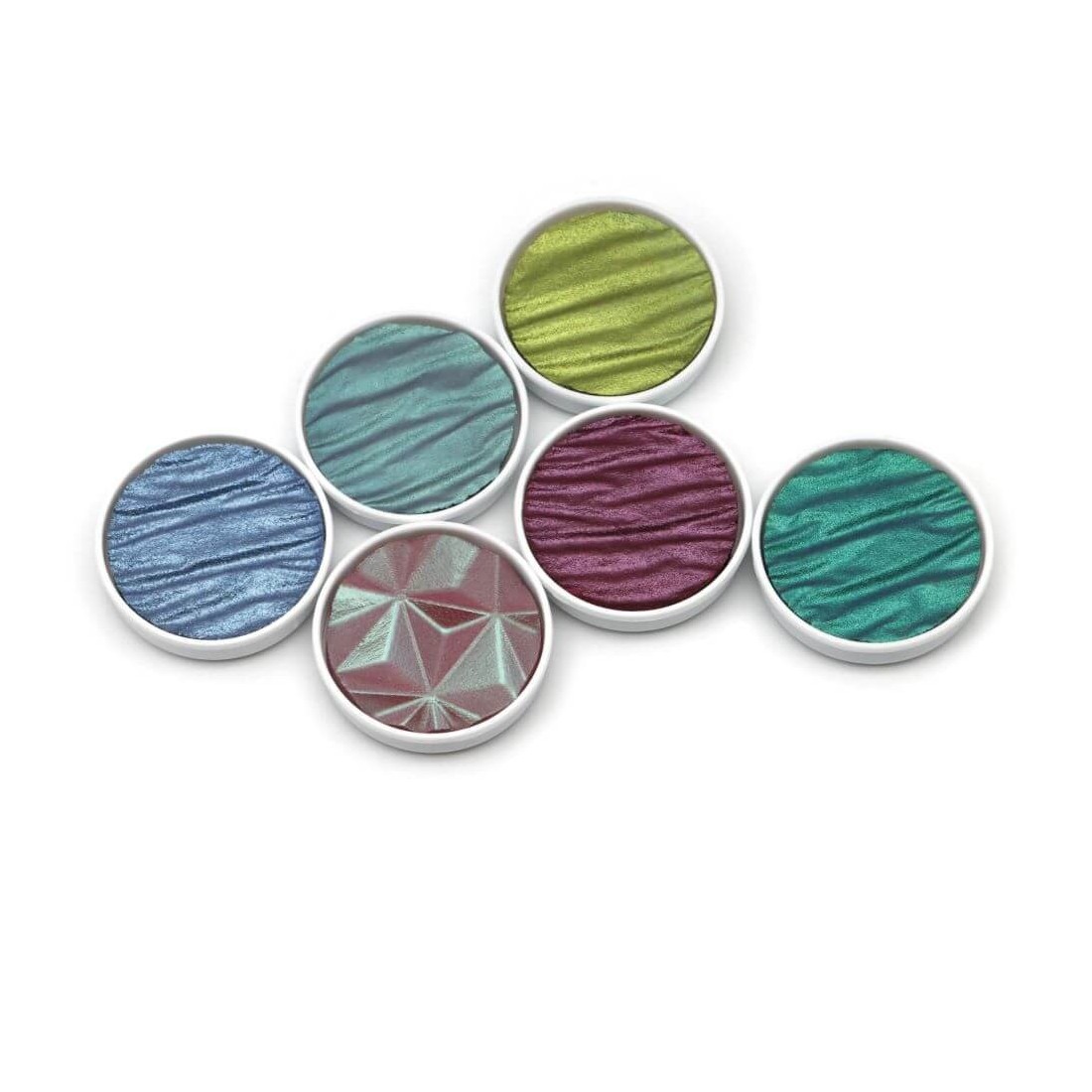 Realizzato in mica, un minerale naturale che offre un'ampia varietà di tonalità metalliche, da oro e argento a colori iridescenti, splendenti perla. Attivare con un po 'd'acqua sulla tavolozza e applicare sul pennino con un pennello. Aderisce a tutte le superfici assorbenti, come carta, legno, gesso, ecc.
