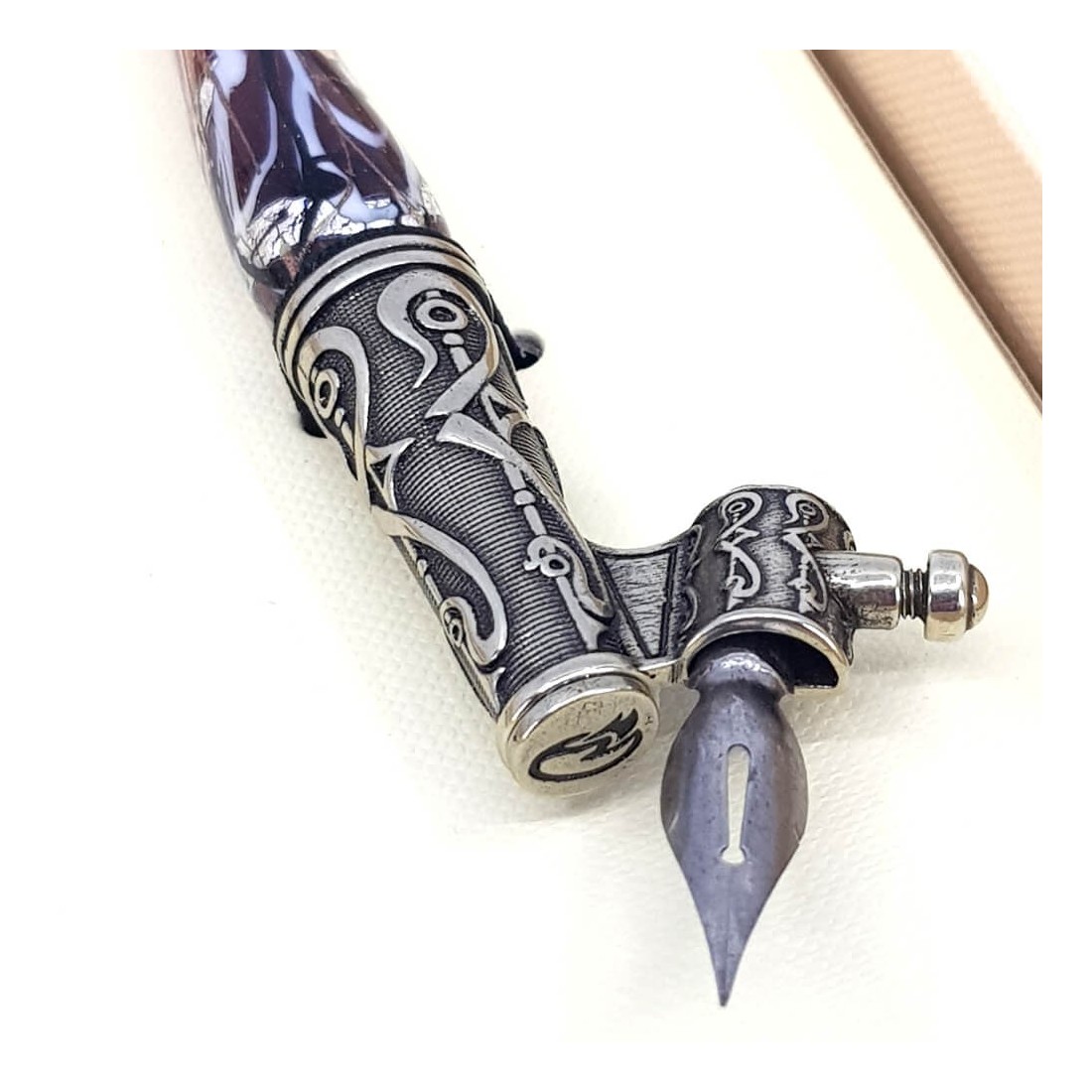 De bronzen houder ondersteunt verschillende penpunten die voorzichtig op hun plaats worden gehouden door een schroefbevestiging. Verkrijgbaar in een reeks prachtige kleuren.