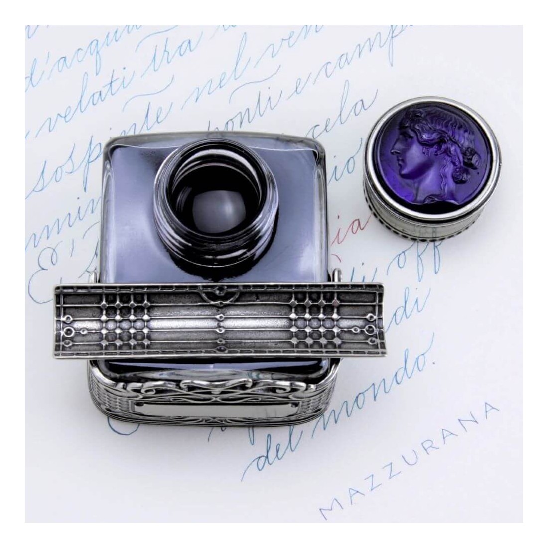 De kalligrafieset Sospiri is een van de vlaggenschepen van de Bortoletti-collectie en het is gemakkelijk te begrijpen waarom. De pen is gemaakt van hoogwaardig hout en de inktpot is gemaakt van met de hand bewerkt brons. Het zegel is ook gemaakt van hout en wordt geleverd met een grote verscheidenheid aan verwisselbare initialen en symbolen.