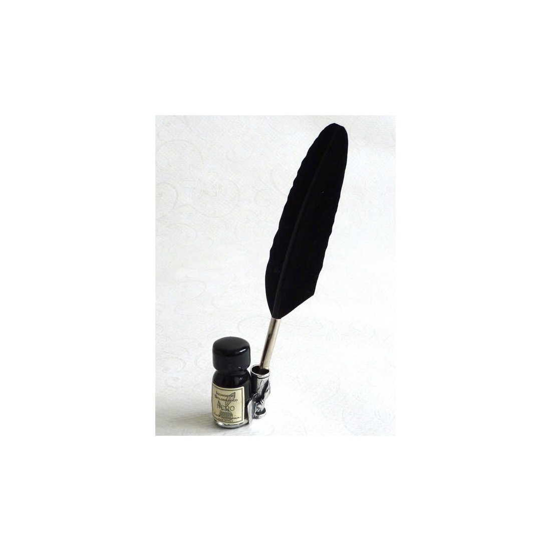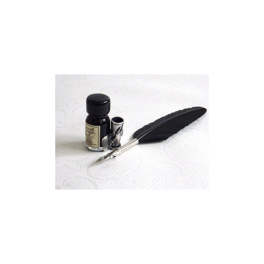 Deze prachtige kalligrafiepen en inktset met ganzenveren is een ideaal cadeau voor diegenen die geen grotere pennen willen. Het wordt compleet geleverd met een fles zwarte inkt met daarin een tinnen ganzenveerhouder. Gemaakt in Italië door La Kaligrafica.