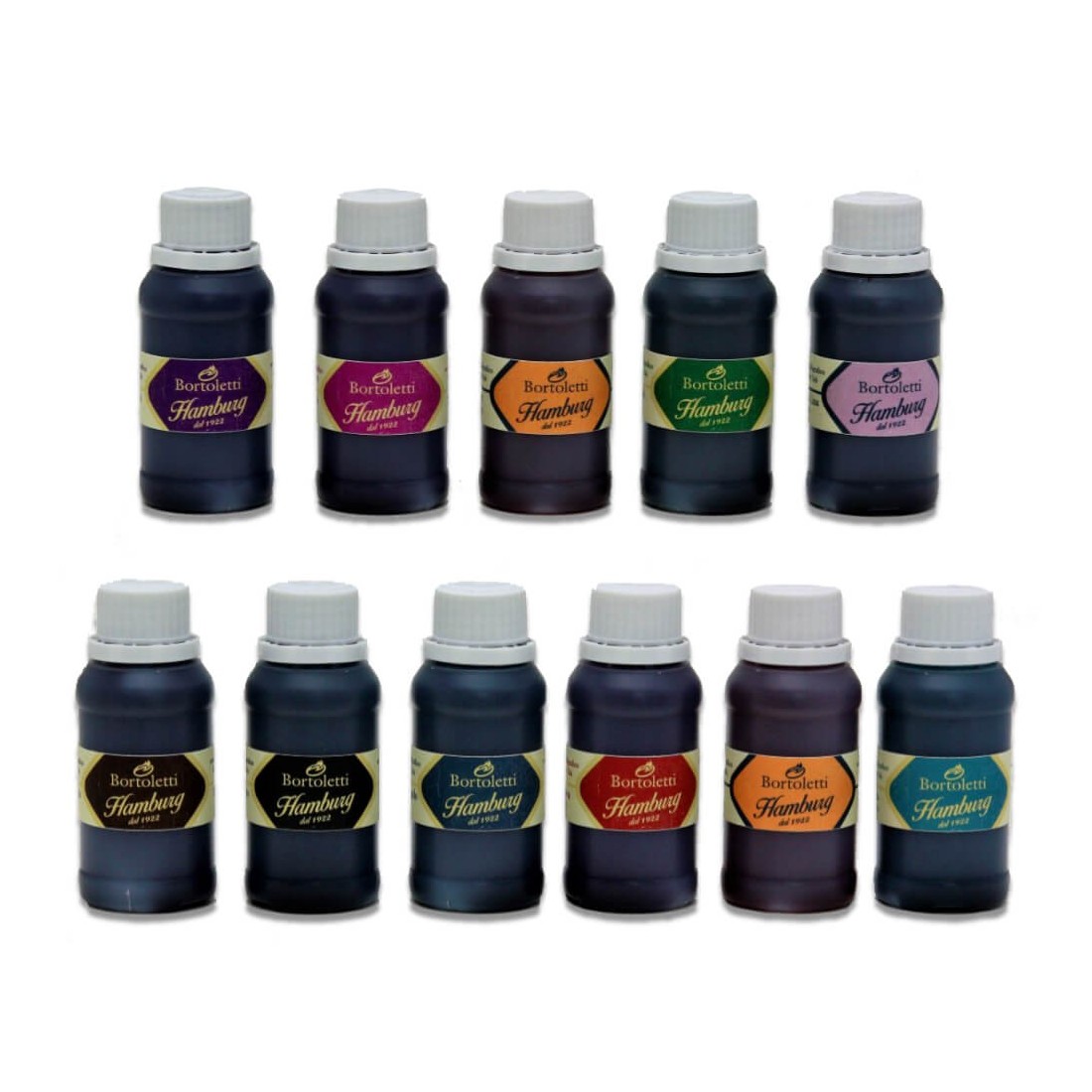 Geboren uit de samenwerking van Bortoletti en het Hamburgse inktbedrijf, negen verbluffende kleuren. Zorgvuldigheid bij de selectie van grondstoffen, aandacht tijdens alle productiefasen hebben geresulteerd in inkt van hoge kwaliteit. Hamburg-inkten zijn hoogwaardige kalligrafie-inkten; de kleuring blijft zeer intens, zelfs als de inkt is opgedroogd.
