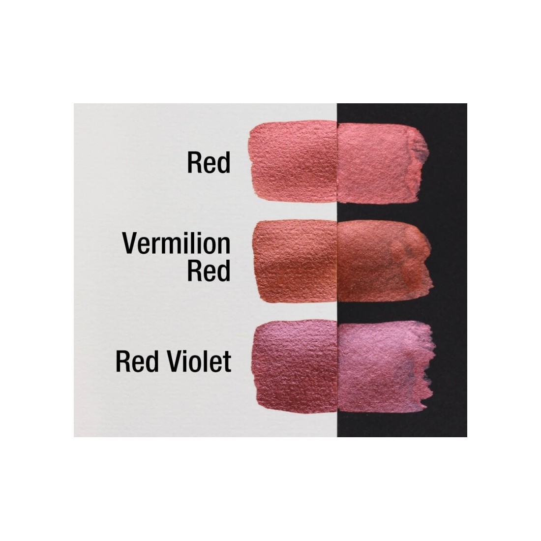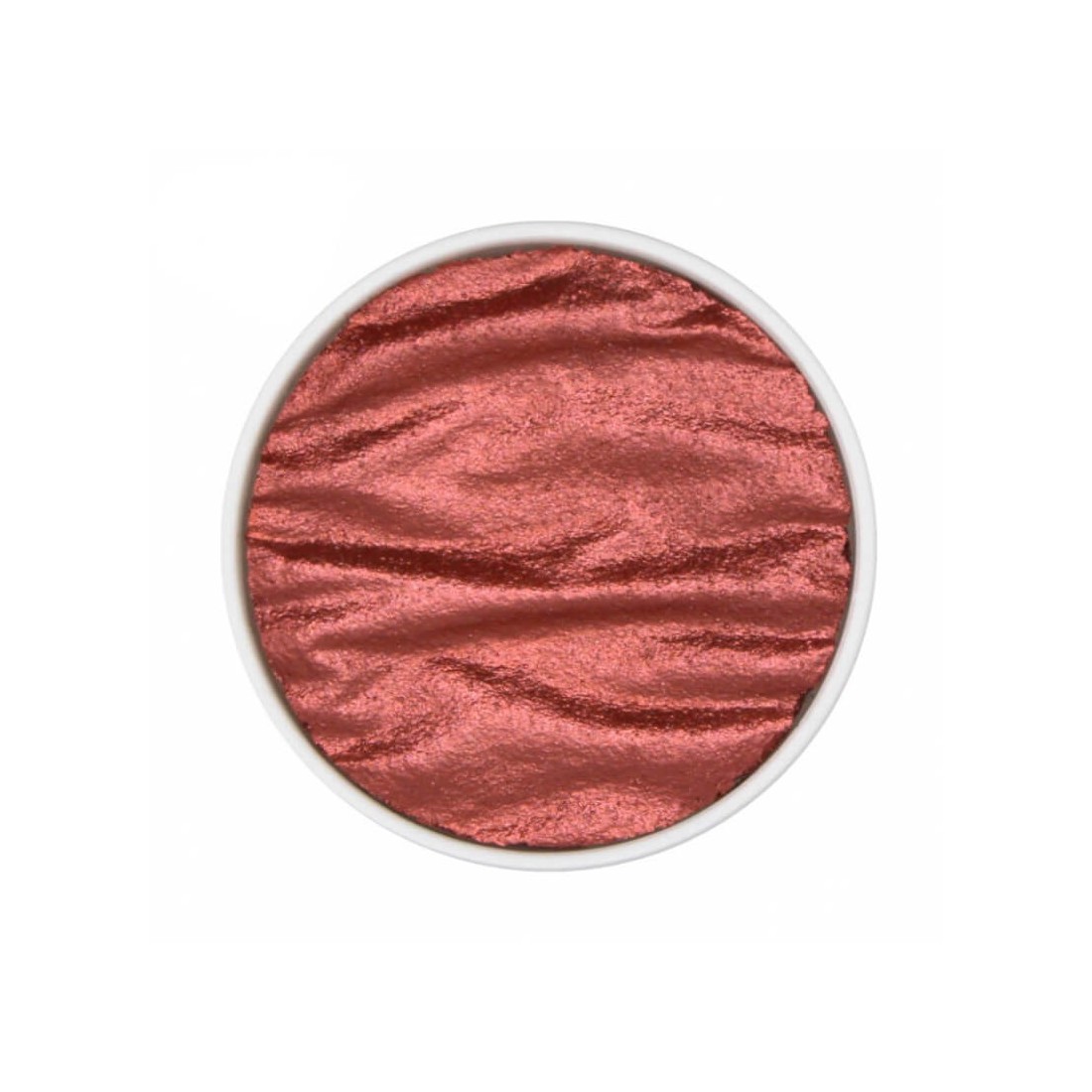 De Vermillion Pearlcolor-navulling, handgemaakt in Duitsland, toont een levendige metallic rood-oranje kleur.Inclusief gelabelde verpakking voor gebruik in een metalen paletdoos.