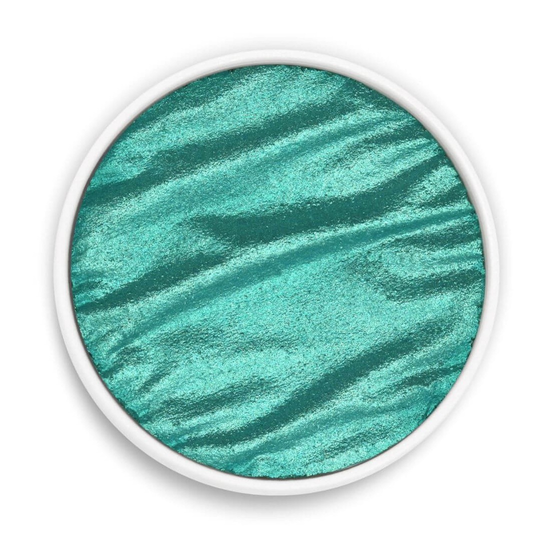 De Caribbean Pearlcolor refill, handgemaakt in Duitsland, biedt een levendige, metalen turquoise tint. Inclusief etikettering voor gebruik in een metalen paletdoos.