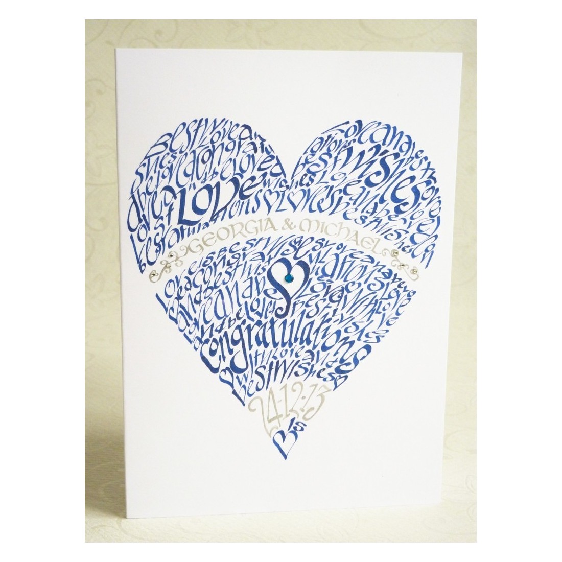 Een mooie, gepersonaliseerde kaart, die in verschillende kleuren verkrijgbaar is. Verschrikkelijk voor St. Valentijnsdag of een verloving of zelfs een bruiloft. Stuur uw liefde met deze speciaal gemaakt kaart.