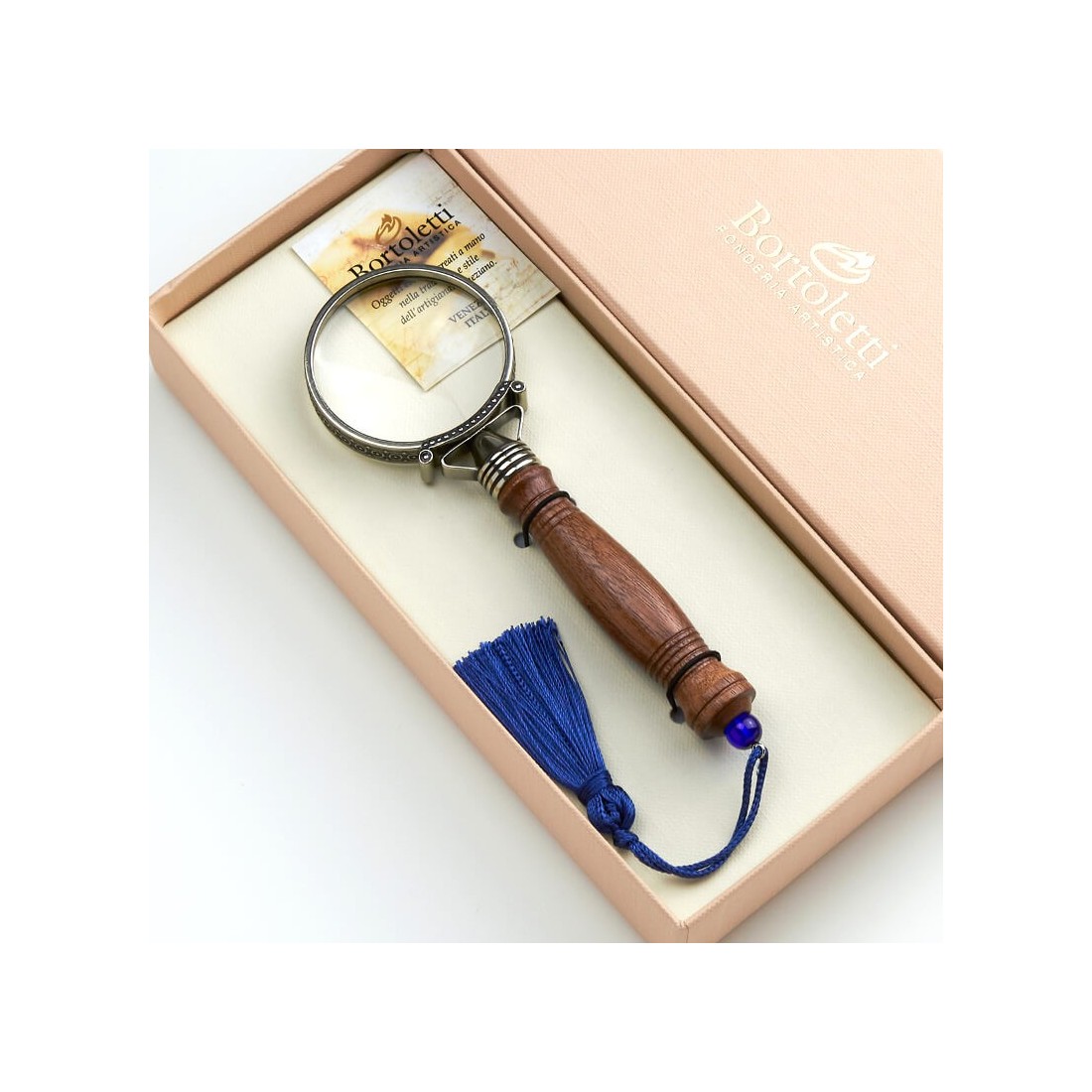 Detta träförstoringsglas är en fantastisk idé för en elegant och enkelt stilfull present från hantverkarnas tradition och erfarenhet. Brons och bokträ tillsammans med smak och enkelhet.