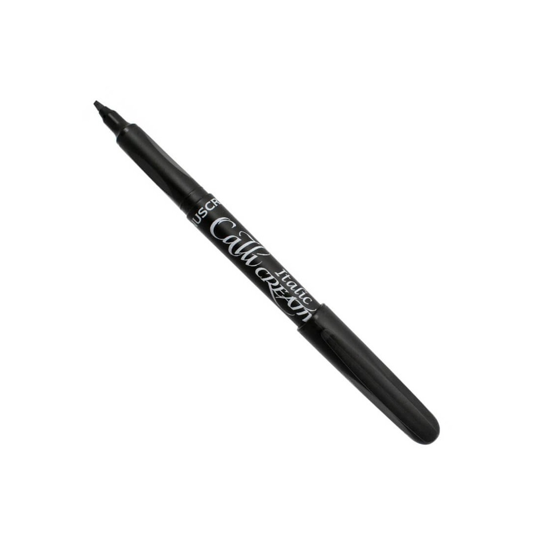 Högerhänt kursiv pennor. Svart eller blå kursiv kalligrafi markörpennor med möjlighet till fyra storlekar av spetsar / spetsar. En del av sortimentet av Callicreative-pennor tillverkade i EU med Manuscript.