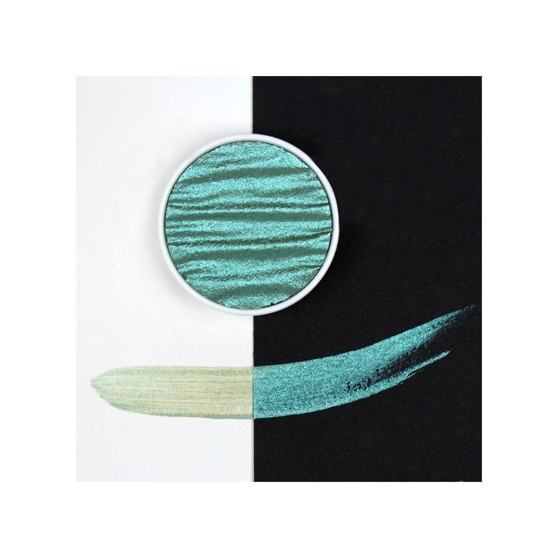Blue Green Pearlcolor refill, handgjord i Tyskland, erbjuder en levande metallisk blandning av blå och gröna toner.Inkluderar märkt förpackning för användning i en metallpalettlåda.