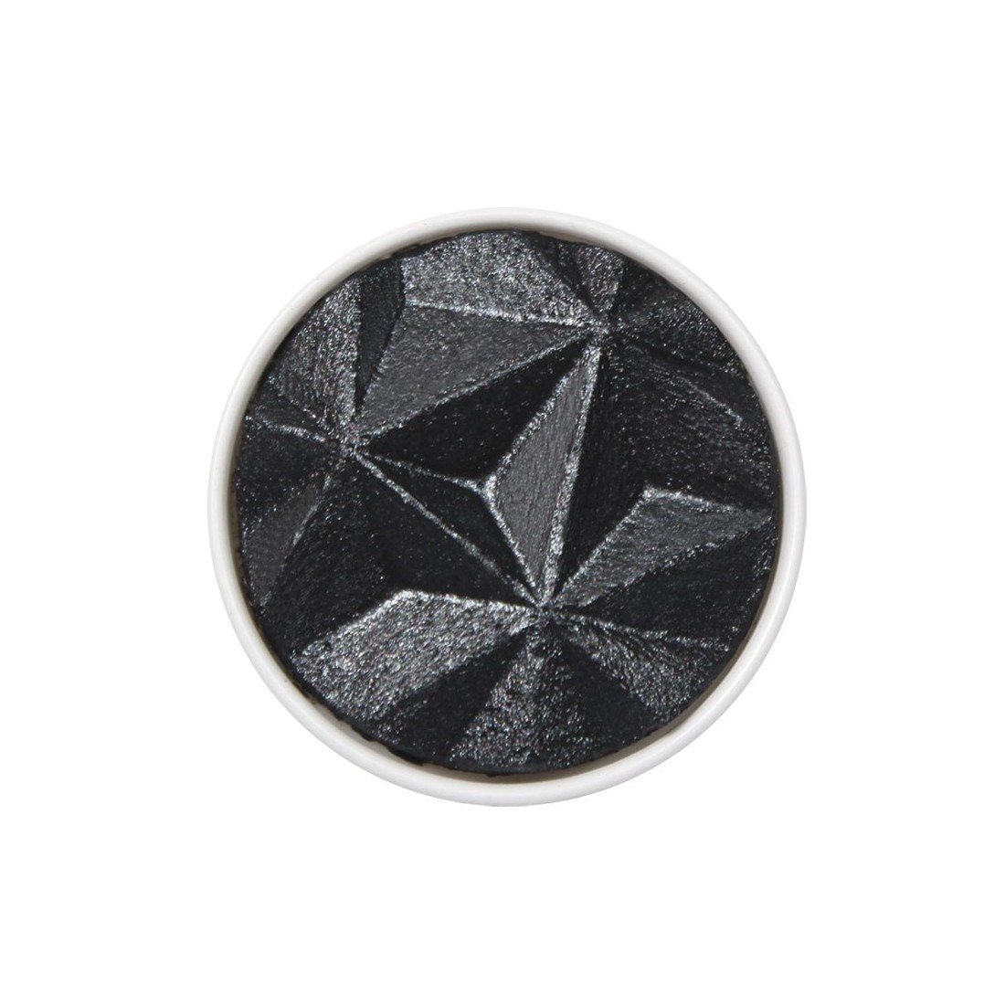 Dark Star Pearlcolor, handgjord i Tyskland, visar en djup metallisk blandning av svart och silver. Inkluderar märkt förpackning för användning i en metallpalettlåda.
